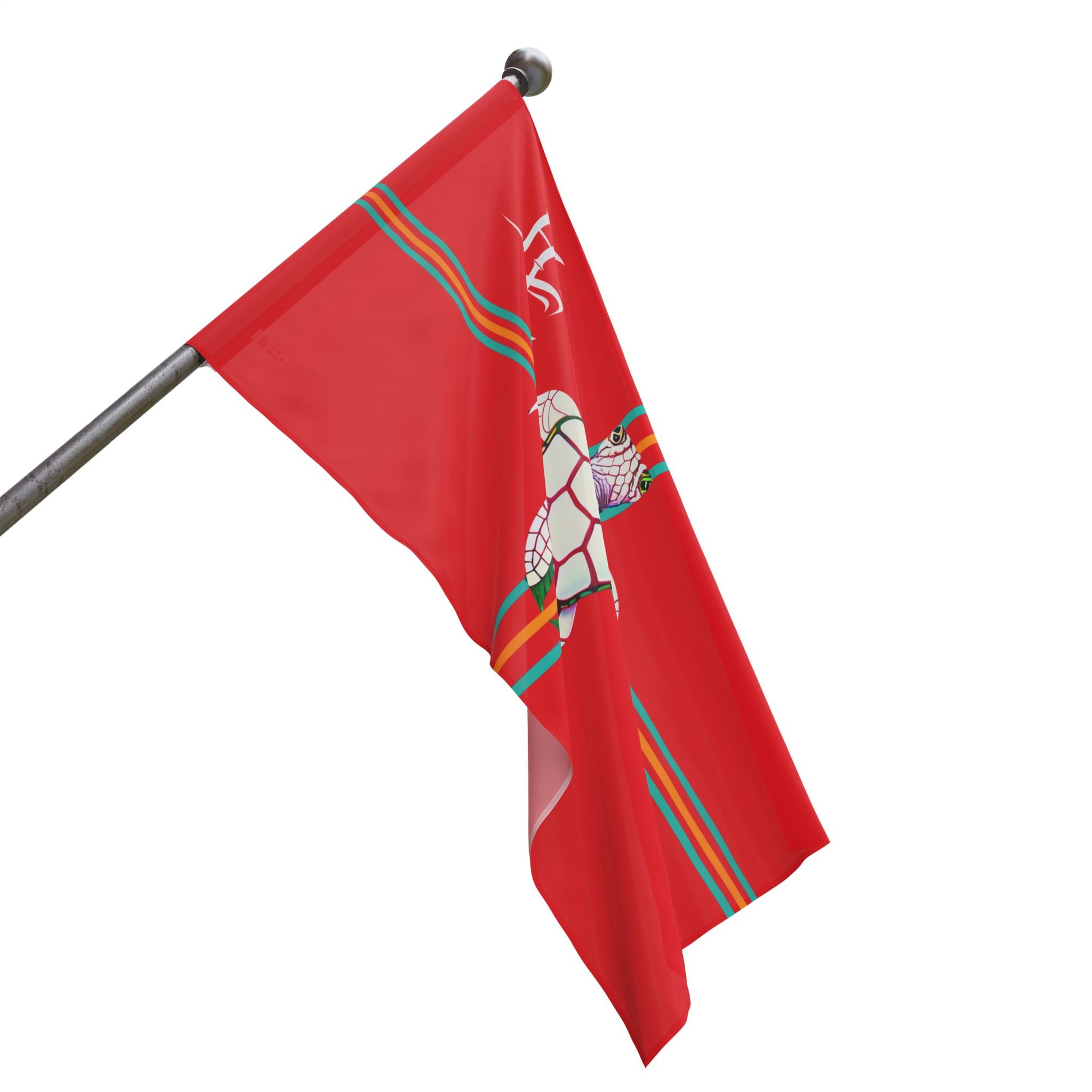 Made 100% with polyester, these flags come in 3x sizes (18"x 12", 36" x 24", 60" x 36") and feature a satin finish with double plain stitch on the edge and side tunnels.
