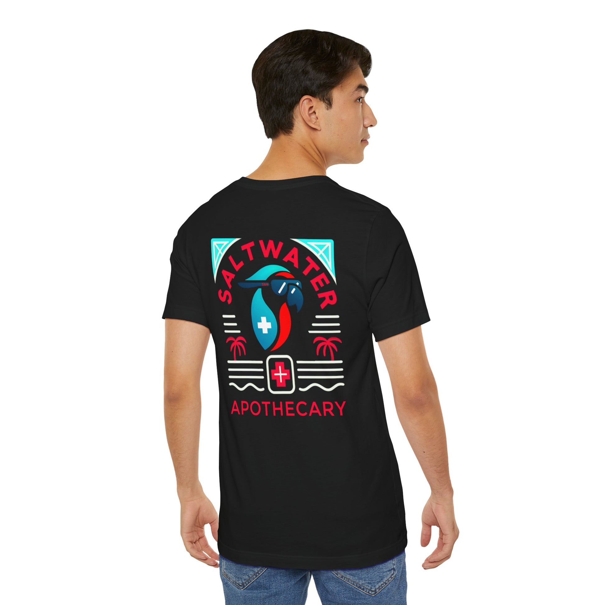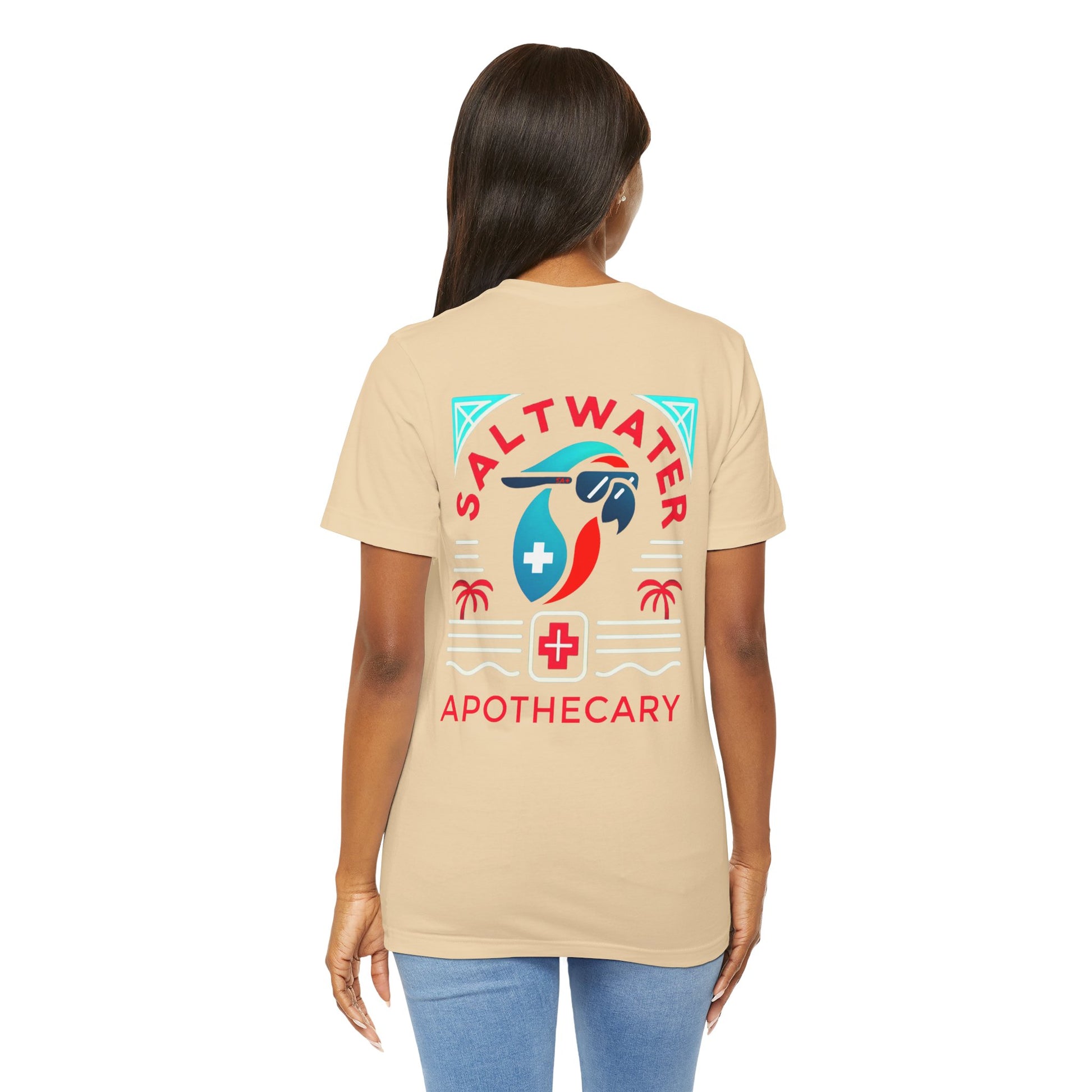 Show your support in Saltwater Apothecary with a signature tee. These t-shirts have-ribbed knit collars to bolster shaping. The shoulders are tapered for a better fit over time. Dual side seams hold the garment's shape for longer.